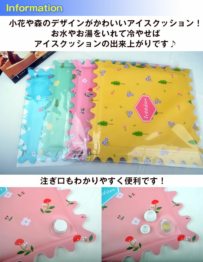 ◇ ひんやり気持ちいい!アイスクッション 説明 ◇ ● 小花や森のデザインのかわいいアイスクッション! ● お水やお湯をいれ冷やせば、アイスクッションの出来上がりです♪