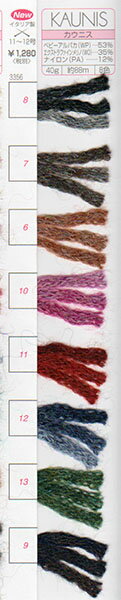 トップ染めのグラデーションヤーン<イタリア製> 8完売 7 6完売 10 11 12 13 9 素材 アルパカ 53% ウール 35% ナイロン 12% 構成 40g 約88m 棒針 11〜12号 標準ゲージ 14.5目・22段